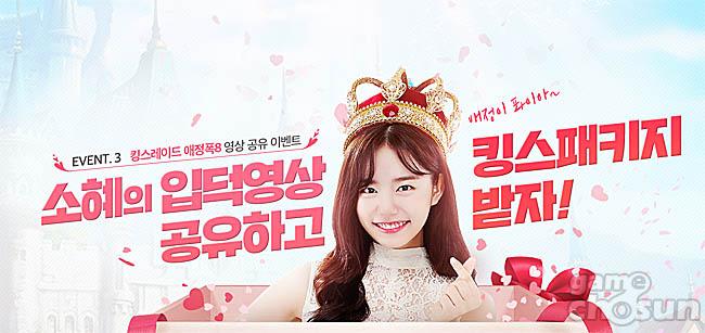 ... ‘킹스레이드’의 영웅들은 마족의 침략을 막아내기 위해 피튀기는 사투를 벌이게 되고 빛의 의지를 각성한 성검의 용사 ‘카셀’은 자신의 운명을 향한 진정한 첫 발을 내딛는다. 이에 신규 영웅 저주의 그릇 샤밀라와 고대문명의 정수 카라, 타입0 체이스 3종이 추가된다.