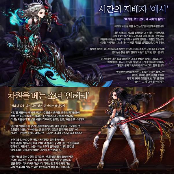 ... 신성한 힘을 사용하여 아군의 능력치를 상승시켜주고 적의 이로운 효과를 제거하는 능력을 지녔다. ‘인헤리’는 ‘절대적인 죽음을 부여하는 암살자’라는 별명이 붙은 도적 캐릭터다. 적에게 죽음의 낙인을 부여하고 회피 불가능한 데미지를 주는 능력을 발휘한다