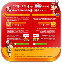 ... 게임에 접속한 유저들은 TGIF와 KFC 브랜드 스토어를 방문하고 게임 내 퀘스트를 완료하면 캐쉬콘과 OK캐쉬백 포인트 적립 쿠폰을 받을 수 있다. 해당 캐쉬콘은 쿠폰을 통해 TGIF의 OK캐쉬백 7,000p 적립과 콤비네이션 스큐어 50% 할인 또는 KFC의 OK캐쉬백