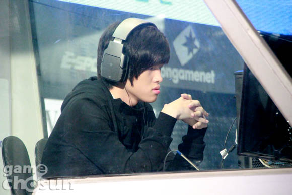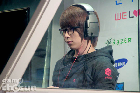 ... ▲ 경기 시작 전, 긴장한 모습의 김승철 2경기에 출전한 김승철은 강초원을 만나 초반 바이오닉 병력을 앞세워 한 차례 타이밍 러쉬를 노렸으나 추적자와 파수기에 막혀 손쉽게 경기를 내줬다. 이어진 4경기에서도 김승철은 이정훈과 맞붙어 은폐 밴시로 견제에 나섰으나 해병에