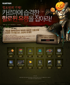 ... 감염자 모드의 일부 맵에는 안개가 짙게 깔려 으스스한 분위기를 연출한다. 이용자는 감염자·광전사 모드에서 좀비와 광전사 등 몬스터를 처치하여 호박 아이템을 얻는 것으로 이벤트에 참여할 수 있다. 호박 아이템은 게임 내 인벤토리를 통해 할로윈 상품권으로 지급되며, 카르마