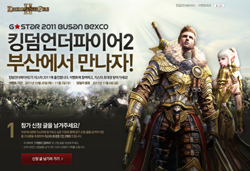... 총 600명에게 1인 2매의 지스타 초청권을 제공하는 이번 이벤트는 킹덤언더파이어2의 공식 홈페이지의 자유게시판에 지스타 참가글을 남기거나 브랜드 카페에 킹덤언더파이어2에 대한 응원메시지를 기재하면 참여 가능하다. 또 공식 홈페이지 내 도미니언 및 히어로 등급 회원은 VI