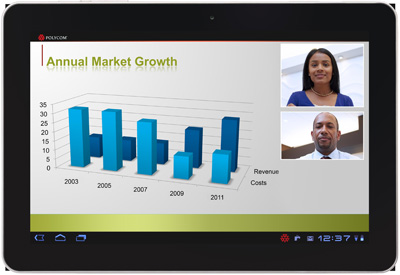 ... 태블릿PC가 있다면 이렇게 이동하면서도 얼마든지 영상 회의로 업무를 진행할 수 있는 시대가 다가오고 있다. 폴리콤코리아가 19일 출시한 기업용 모바일 영상 회의 솔루션 '폴리콤 리얼프레즌스 모바일'은 이러한 차세대 비즈니스 업무를 위한 애플리케이션이다. 삼성갤럭시탭10