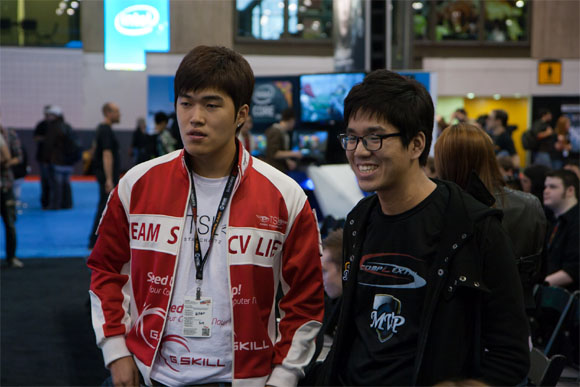 ... A조에 속한 신상호는 캐나다의 'Attero' 앤드류 골렉(다이나믹)에 일격을 당하며 1패를 기록했지만 이후 남은 두 경기에서 모두 승리를 거두며 2승 1패의 기록으로 8강 진출에 성공했다. ▲ IEM 뉴욕에서나란히 8강 진출에 성공한 신상호(좌)와 박수호(우) (출처: