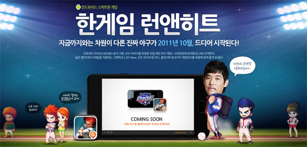 ... 8개 프로야구 구단과 소속 선수들을 게임으로 만나볼 수 있으며, 선수의 실사 이미지와 다양한 투구자세와 타석에서의 움직임 등을 2. 5D 그래픽으로 구현했으며, 자이로센서와 터치방식의 2가지 조작방식 중 사용자가 원하는 방식을 선택해 게임을 진행할 수 있다. 한게임은 지난