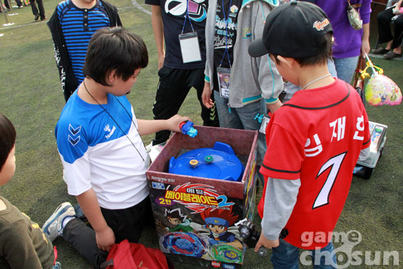 ... 어른들은 '팽이대회'를 보며 옛 향수에 잠기고, 어린 아이들은 서로 자신들의 팽이를 뽐내며 사뭇 진지한 태도로 경기에 임하고 있었다. 이 경기에서 우승을 차지한 메탈베이블레이드 국가대표 장우혁 군(9세, 서신초2)은 경기가 끝난 후 우승 트로피 보다 상품으로 받은 메탈베이블