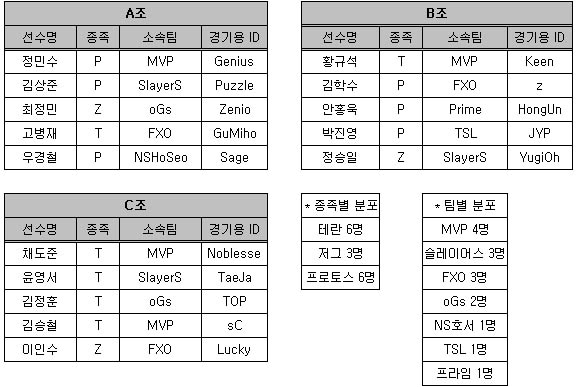 .... 장민철과 최성훈은 진출 유력' ▲ 블리자드컵 진출이 유력한 장민철(좌)와 정종현(가운데), 임재덕(우) 최근 'IGN 프로리그(IPL)'시즌3에서 '스테파노'라는 아이디를 사용하는 프랑스 선수 일리예스 사토우리(밀레니엄)가 우승을 차지하며 블리자드컵에 진출할 10명의