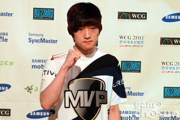 ... 1일 용산 e스포츠 상설경기장에서 진행된 '월드사이버게임즈 2011(WCG)' 한국대표 선발전 32강 H조 경기에서 두 IM 테란 정종현(IM)과 안호진(IM)이 각각 조 1, 2위로 조 16강 진출에 성공했다. ▲ 16강 진출에 성공한 안호진(IM)과 정종현(IM)