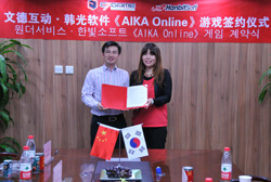 ... '에이카 온라인'은 2009년 2월 국내에서 정식서비스를 시작한 이후, 현재까지 대만, 일본, 미국을 비롯한 9개국에서 서비스되고 있다. 대형 국가전 및 공성전을 플레이 할 수 있는 게임이지만650MB미만의 저용량 클라이언트로 해외서비스에서 호응 받았다. '에이카' 중국