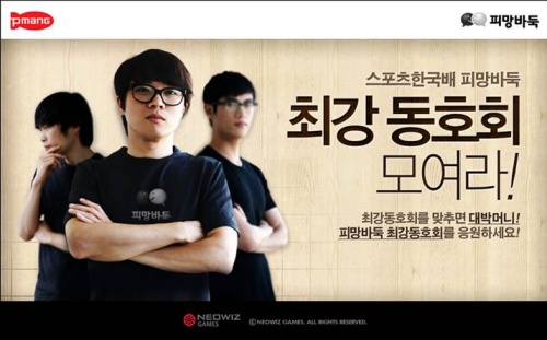 ... 이번 동호인 대회는 피망바둑 1단부터 8단 사이의 중급자 3명이 한 팀을 이루면 누구나 참여할 수 있다. 대회는 3명이 각각 1판씩 3판의 대국을 펼쳐 2승을 거두면 이기는 치수제 방식으로 진행된다. 대회 준결승과 결승전은 네오위즈게임즈 본사에서 진행되며, 입상자에게는