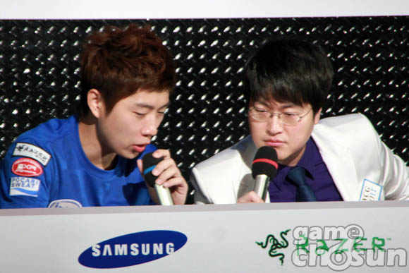 ... 고병재가 앞마당 입구를 3개의 병영으로 막자 임재덕은 바퀴와 맹독충으로 이를 뚫어내려 했지만 실패했다. 의료선을 생산한 고병재는 맵을 순회하며 견제를 펼치기 시작했고, 곳곳에 퍼진 대군주를 사냥하며 임재덕의 병력생산을 방해했다. 고병재는 공성전차 생산과 해병의 업그레이드