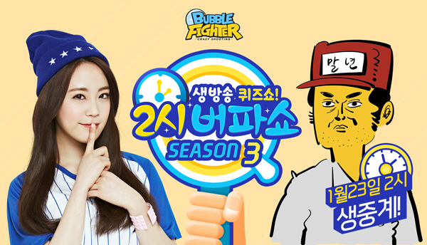 ...정답을 맞힌 유저에게 최종 획득 점수에 따라 '플라즈마 부스터(15일)' '실드캔슬뱅' '고급펫 먹이' '넥슨캐시' 등의 보상이 제공되며, 3주 간 방청 및 퀴즈 이벤트에 모두 참여한 '방청왕' 유저에게 '프리미엄지원 액세서리 세트'가 주어진다. '2시 버파쇼 시즌3'는 주관 방송