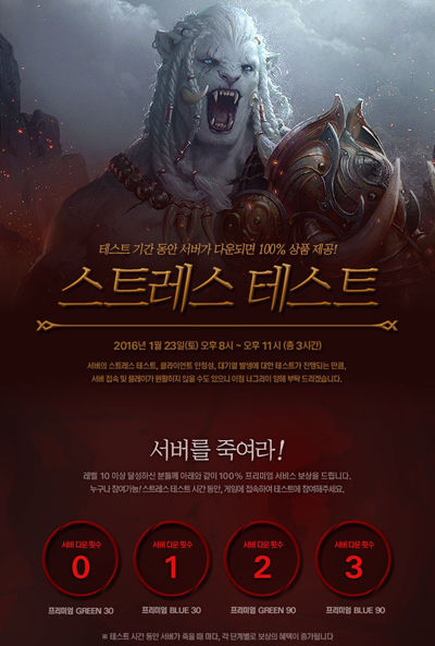 ...테스트는 시작과 함께 몰린 이용자 때문에 오픈 30분 만에 추가 서버를 열었다. 이용자들은 레벨 10까지 게임을 즐기며 오후 8시 40분에 한 차례 서버를 다운시키는데 성공했다. 이어 오후 10시 2분에 2차 서버 다운으로 테스트 시간 내 2번의 서버가 다운 됐으며, 1서버 대기
