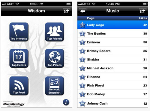 ... 비즈니스 인텔리전스(Business Intelligence, BI)란 기업들이 빠르고 정확하게 의사 결정을 하기 위해 필요한 자료를 모으고 분석하는데 필요한어플리케이션이나 기술 등을 말한다. BI 솔루션인 '위즈덤'은 기업들이 페이스북 어플리케이션 사용자 프로필에 포함된 인