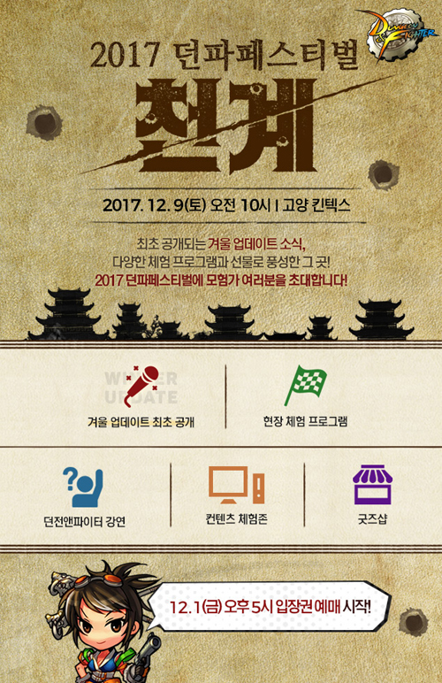 ... 성승헌 캐스터와 정준, 정인호 해설위원이 사회를 맡고, ‘메인무대’를 비롯해 ‘강연존’ ‘레이드존’ ‘시연존’에서 볼거리와 체험 이벤트가 마련된다. 넥슨은 이날 겨울 시즌 예정된 대규모 업데이트를 최초 공개하고, 특별 게스트 ‘ BJ 장지’ ‘BJ 에어비스’와 이용자가 함께하는
