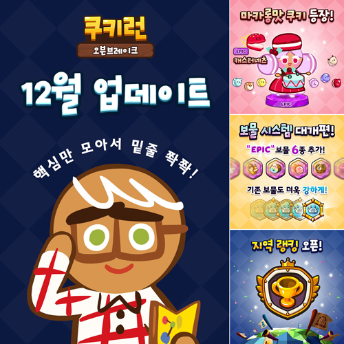 ... 아울러 오는 12일까지 ‘마카롱맛 쿠키와 우정쌓기’ 이벤트에 참여하면 크리스탈, 최고급 쿠키 상자 및 펫 알, 보물 등 보상이 주어진다. 이와 함께 새로운 보물 6종 추가하고 일부 기존 보물의 기능도 보강했다. 또한 보물 등급 및 강화 체계를 추가하는 등 관련 시스템을 개편했다