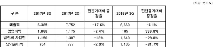 ...7%, 전분기대비 매출액 -17. 6%, 영업이익 -7. 4%, 당기순이익 -2