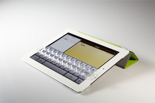... 이 제품은 기존 태블스킨의 업그레이형으로 값비싼 아이패드용 키보드를 구입하기 부담스러운 유저들을 위한 1만원 대의 실속형 제품이다. 이번에 업그레이드 된 제품은 얇고(1. 5mm) 가벼운(9g) 플라스틱 키스킨(key-skin) 형태로, 아이패드 화면 위에 올려놓으면 가상