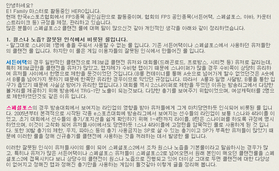 ... 기존의 '서든어택'이나 '스페셜포스1'에서 적용됐던 '각 팀당 스나이퍼 1명만 사용하기'와 '바닥에 떨어진 무기 줍지 않기' 등의 클랜전 규칙을 '스포2'에서도 고집하는 클랜과 유저들에게타게임에 이러한 룰이 사용된 이유를 설명하고 '스포2'는 새로운 게임이니 기존의 규칙이 적용