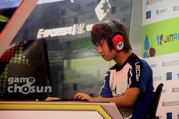 ... ▲ 경기를 승리로 장식했음에도 의외로 덤덤한 표정을 보이는 허영무 선수 26일, 용산 e스포츠 상설경기장에서 '2011 진에어 스타리그' 8강전 2주차 마지막 경기에서 허영무가 이영호를 2대1로 제압하고 4강 진출을 확정지었다. 경기에 앞서, 대미를 장식할 '최종병기