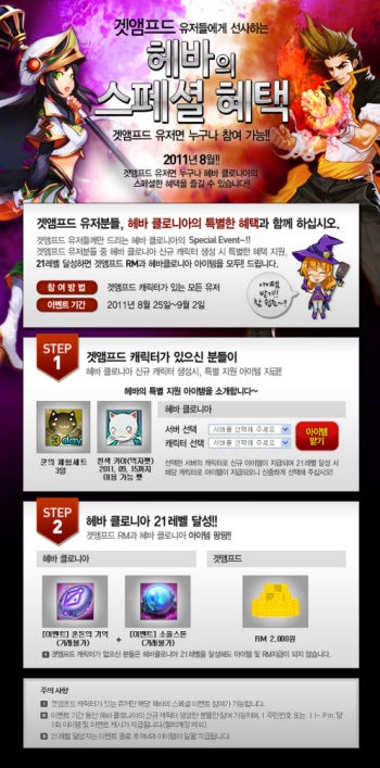 ...윈디소프트(대표 백칠현)는 자사가 서비스하는 익스트림 액션코드 '겟앰프드 레볼루션’이 ‘헤바의 스폐셜 혜택’ 프로모션을 진행한다고 26일 밝혔다. 내달 2일까지 진행되는 이번 프로모션은 헤바 클로니아 신규 캐릭터 생성 시 쿤의 체험세트 3일권과 흰색 먹자펫 카이가 제공된다.