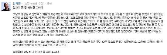 ... 이어 "사회 전체에 대해 각성을 부탁하는 이야기를 했는데 안철수 박사에게 폐가 되는 이야기로 변질되는 것을 보니 기가 막히다"며 "지금이 바로 남의 말을 가져다가 아전인수격으로 사용한 상황"이라고 덧붙였다. 특히 김 대표는 "출장중인데 별일로 다 인터넷에 접속한다"고 언급