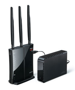 ... 특히 5dBi 출력의 안테나 3개를 장착시켰을 뿐만 아니라, 안테나를 좌우 360도 회전이 가능하도록 제작되어 사용자가 공유기 설치 장소에 맞춰 최적의 전파 환경을 구축할 수 있도록 설계됐다. 또한 네트워크스토리지 기능을 지원해 후면의 USB포트에 외장HDD, USB메모리,