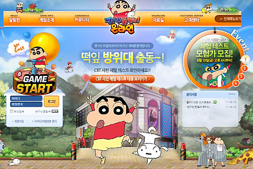... 이번 공식 홈페이지에서는 짱구와 철수 등을 비롯 게임에 등장하는 캐릭터 소개를 통해 ‘짱구는 못말려 온라인’의 내용을 미리 감상할 수 있다. 또한 공식 홈페이지 오픈과 함께 19일 오후 4시부터 7시까지 단 3시간 동안 진행되는 CBT 사전 체험 프로모션을 진행한다. 체험