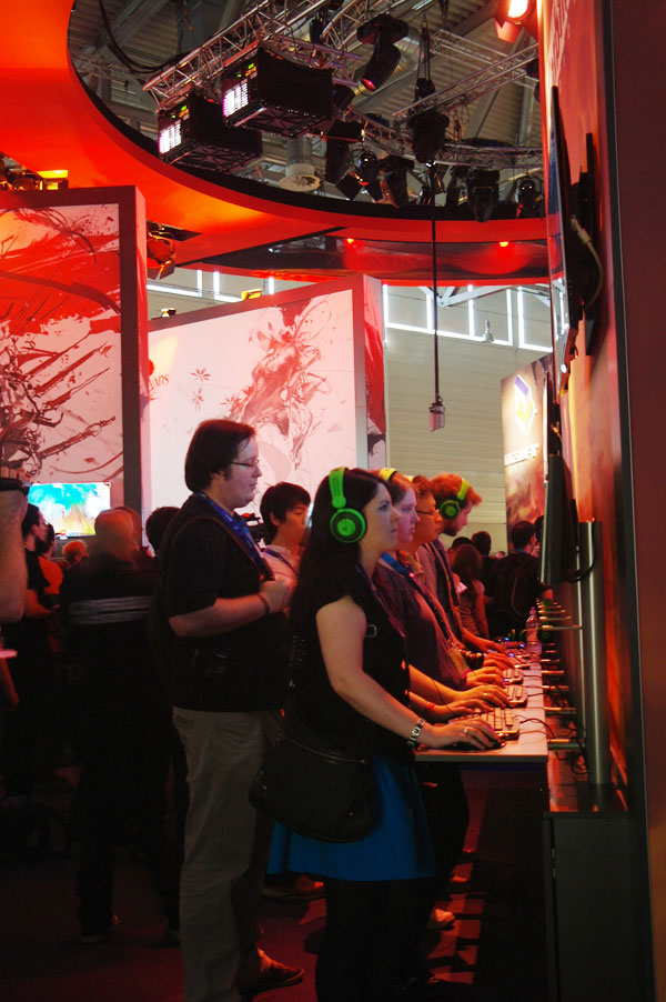 ... 특히, 같은 엔씨소프트의 북미 스튜디오로 길드워2를 개발중인 아레나넷의 유니폼을 입은 관계자 다수가 '와일드스타'의 영상을 관람하는 모습이 카메라에 잡히기도 했다. 엔씨소프트 부스는 '길드워2'와 '와일드스타'의 신규 영상을 보려는 사람과체험해보려는 사람들로 붐볐다. ※