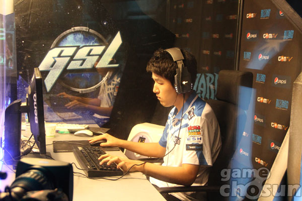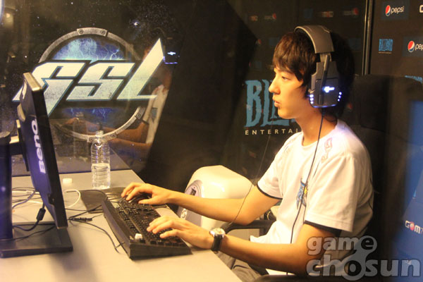 ... 김상준은 2경기에서 이대진(FXO)에게 패하며 패자전으로 떨어졌으나 4경기 패자전에서 같은 팀 변현우를 꺾고 최종전에서 이대진에게 복수하며 16강에 진출했다. ▲ 조2위로 16강에 오른 김상준 선수 16일, 목동 곰TV 스튜디오에서 진행된 '펩시 GSL 시즌5(Aug)'