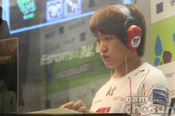 ... ▲ 박준오, "리틀 폭군 기세 좋죠?" 이날 경기에서박준오는 경기 시작과 동시에 빠른 스포닝풀을건설하며 빠른 공격을 준비했고, 어윤수 역시같은 빌드로 맞대응 했다. 초반 빌드가 비슷해지자 박준오는 상대방 보다 더욱 빠르게 저글링 부대를 생산했고, 어윤수가 건설 중이던앞