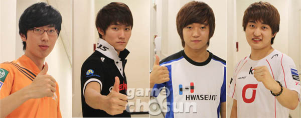 ... 좌측부터 정명훈, 신동원, 박준오, 이영호 선수 12일 용산 e스포츠 상설경기장에서 열린 '진에어 스타리그 8강전 1회차 경기에서 네 선수는 각각 승리를 거두며 4강 진출에 유리한 고지를 밟았다. 디펜딩 챔피언으로 나서는 지난 시즌 우승자 정명훈은 박재혁(SKT)과 경기