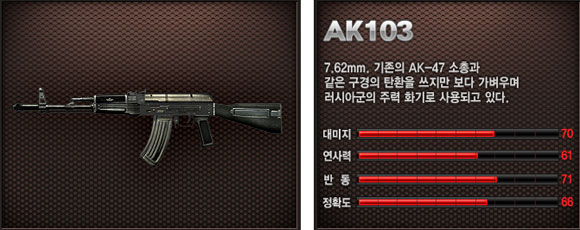 ... '스페셜포스2'의 주무기는 Rifle 2개, Sniper 2개, MG 2개, SMG 2개, Shotgun 1개 총 9개가 있다. 이 9개의 주무기중에서 Rifle- AK103, Sniper - CZ700,Shotgun - Benelli M4이 공식 홈페이지에서 화두에 오르고