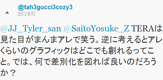 ... 반대로 생각하면 그것 정도의 그래픽은 누구나 만들 수 있다는 것이다. 그럼 뭘로 차별화를 하면 좋을까?"라고 글을 남겼다. 일본어로 'アレ'는 '그것'이라고 해석 가능하므로 이글을 접한 국내외 유저들은 타구치 전무가 언급한 '그것'에 대한 해석차이로 논란을 낳고 있다