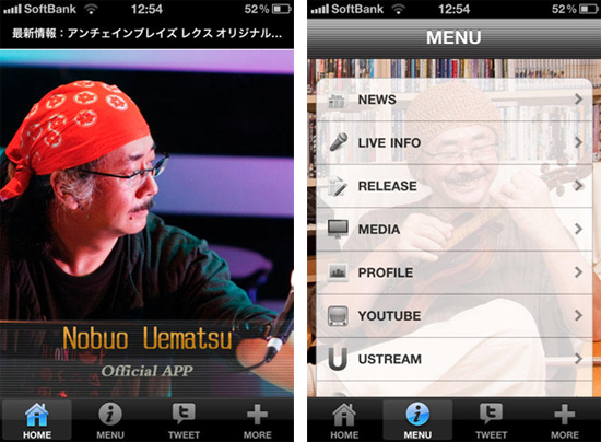 ...도그이어레코드는 아이폰용 우에마츠 노부오 공식 어플리케이션을 발매했다. 우에마츠 노부오는 '파이널 판타지'시리즈의 음악 및 다수 게임의 음악을 맡아 게임 음악계의 거장으로 불리는 인물이다. 아이튠즈를 통해 무료로 제공되는 이 어플리케이션은 그의 공식 트위터, 페이스북 및