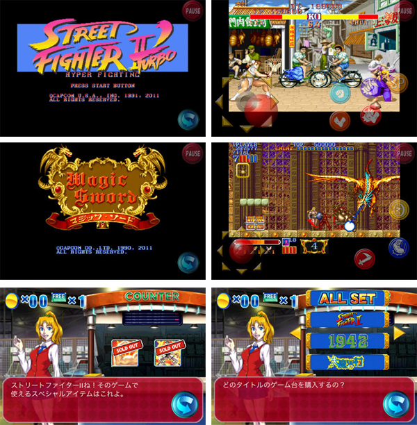 ...캡콤은 자사의 오락실용 게임들을 아이폰을 통해 즐길 수 있는 어플리케이션 '캡콤아케이드'에 신작을 추가했다. 이번에 추가된 게임은 '스트리트파이터2 터보' 및 '매직소드' 2종. '스트리트파이터2 터보'는 '스트리트파이터2'를 바탕으로 보다 빠른 격투 전개와 필살기 추가 등