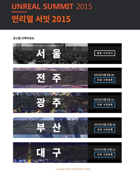 ... 지난 2010년 단독 엔진 세미나로는 처음으로 시작된 이래 언리얼 엔진의 최신 기술 및 정보를 공유하는 행사로 자리잡은 언리얼 서밋은 서울 이외의 지역에서는 부산과 대구에서만 개최됐다. 전주와 광주에서 개최되는 '언리얼 서밋'에서는 언리얼 엔진 4의 테크데모인 '연(Kite