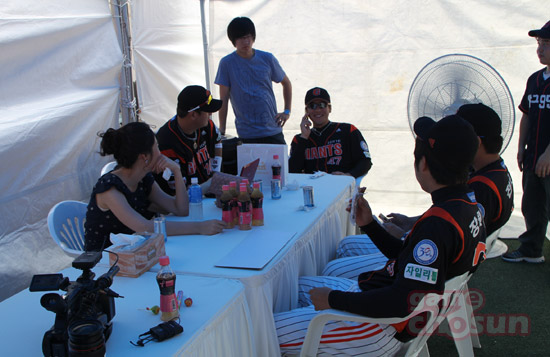 ... ▲ 최희 아나운서는 팬 사인회에서 롯데선수들과이야기를 나누며 즐겁게 행사에 임했다. ▲ 더운 날씨에도 미소는 기본 ▲ 사진을 찍다가 기자와 눈이 마주쳤다. ▲ 공에 사인을 해주는 최희 ▲ 약 1시간의 팬 사인회 일정을 마치고 대기실로 향하는 최희 ▲ 달콤한 휴식에