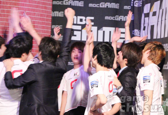 ... 23일, 문래 룩스히어로상설경기장에서 열린 '신한은행 프로리그 10-11 플레이오프' 첫 경기에서 KT가'최종병기' 이영호와 '신형병기' 김대엽을 앞세우고 저그라인 4인방을 모두 출전시키는 승부수로 승리했다. ▲ 4대 2로 플레이오프 1차전에서 승리한 KT 특히, 포스트시