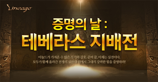... 테베라스 지배전(이하 지배전)은 지난 6월 공개한 대규모 서버 통합 전장이다. 전장은 ‘테베라스’ 지역을 배경으로 한다. 지배전을 통해 최대 3개의 서버가 하나의 전장에서 만나 전투를 펼친다