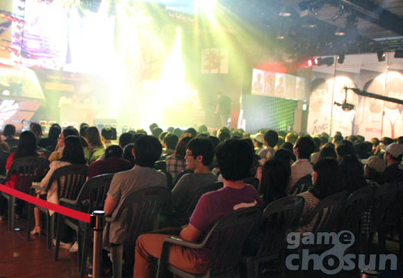 ... '스타리그'는 3년만에 부활한 만큼 선수들의 감회도 새로워보였는데, 전태양-김윤환의 떨리는 세팅 순간과 경기장 분위기를 살펴본다. ▲ 꽉 들어 찬 관중석, 무대가 밝아서 선수가 보이지 않는데? ▲ "김윤환 등장!" 헤드폰을 셋팅하는 김윤환, 마치 음악을 듣는 것 처