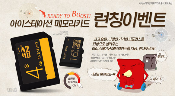 ...아이스테이션(대표 채종원)은 SD카드와 마이크로SD등 메모리 카드 2종을 출시하는 기념으로 이벤트를 29일까지 실시한다고 밝혔다. 우선 아이스테이션 메모리카드를 사용하고 싶은 제품에 투표하는 설문 이벤트로 추첨을 통해 총 10명에게 마이크로SDHC Class10 16G제품을 증