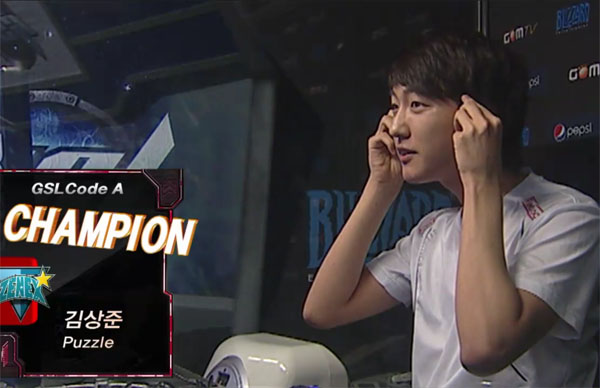 ... ▲ 코드A 우승을 차지하고 코드S에 직행한 김상준 선수 18일 목동 곰TV스튜디오에서 진행된 '2011 펩시 글로벌 스타크래프트2 리그(GSL)' 코드A 결승전에서 김상준이 김정훈을 4대2로 격파하고 우승을 차지했다. 김상준은 1세트와 2세트에서 김정훈의 4차관 병력에 패