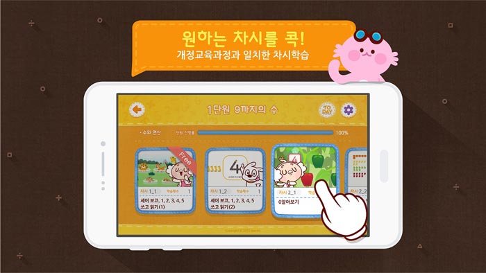 ... 아이들이 좋아하는 친근한 캐릭터들이 등장해 수학 개념을 애니매이션 방식으로 쉽고 재미있게 알려줘 몰입도가 높은 게 개념똑똑의 장점이다. 초등학생들은 개념똑똑을 한번만 다운로드 하면 집, 자동차 안, 식당 등 시간과 장소의 제약 없이 어떤 환경에서도 초등 정규 수학 개념을