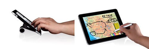 ... 순수 알루미늄과 고마찰 고무 등 고급 소재만을 사용했고 독특한 거치방식을 가진 제품이다. 거치방식은 알루미늄 판 아래 감춰져 있는 고무 실린더를 꺼내 다시 알루미늄 판 위에 놓고 아이패드를 그 위에 올려 놓는 것으로 간단하다. 고마찰 고무 소재의 실린더로 아이패드를 안전하고