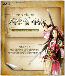 ...'재산 UP 이벤트'는 오는 31일까지 진행되며, 게임내 수도 연무장과 민지 연무장에서 획득하게 되는 동전 보상을 2배로 늘릴 예정이다. '무림영웅'의 연무장은 다른 게이머들과의 대전을 통해 동전과 명성을 보상받을 수 있는 장소인 수도 연무장과 민지 연무장에서 각각 오전과 오후