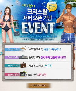 ... 이와 함게 다양한 이벤트도 함께 진행한다. 먼저 이벤트 기간 동안 시티헌터 신규 가입자들 중 추첨을 통해 100명에게 문화상품권을 증정하며, 여름방학과 휴가시즌을 맞이하여 게임머니인 CT 구매 시 캐리비안베이 입장권, 주유상품권, 외식상품권 등을 증정한다. 또, 시티헌터