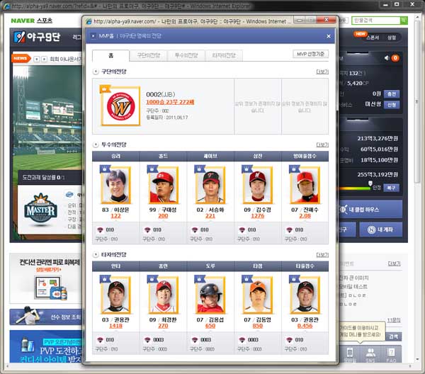 ... 새롭게 공개된 마스터리그는 기존 최상위 리그였던 프로리그에서도 상위권자만이 참여할 수 있는 리그이며, 회당 5천만 원의 비용과 2만 5천 CP를 소모해 최고레벨인 10레벨의 선수를 스카우팅 할 수 있는 프리미엄 스카우터와 피츠버그, 플로리다의 신규 구장이 포함된다. ▲마스터