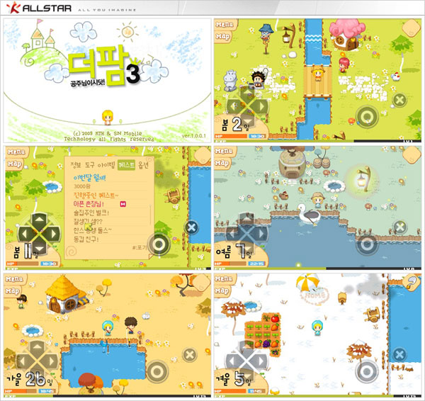 ... 아기자기한 그래픽과 쉽고 간단한 조작법으로 큰 사랑을 받았으며, 오랜 개발 기간을 거쳐 올스타모바일이 스마트폰 버전으로 개발, T스토어를 통해 안드로이드 시장 공략에 나선다. 특히, 작물 육성에 중점을 둔 다른 스마트폰 게임들과 달리 '더팜3'는 경작 외에도 가축 기르기