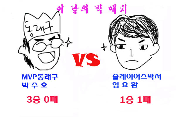 .... '동래구'의역스윕 ▲ 이 날 경기는 '동래구' 박수호(MVP)와 슬레이어스 임요환, 김동주, 문성원'3테란'의 격돌이 포인트였다. 임요환은 4경기에 출전해 무작위 선수 김현태를 상대로 과감한 러시를 선보여 '역시 황제'라는 평을 얻었으나, '동래구의 역습'은 거셌다